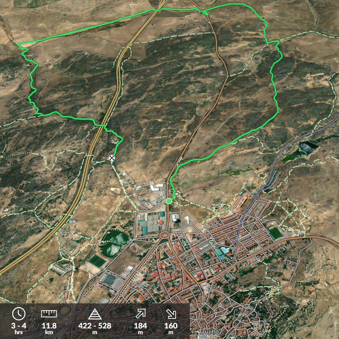 IBP Corriendo: 61 IBP Caminando: 41 IBP Bicicleta: 11 Desnivel de subida: 121 m Desnivel de bajada: 160 m Distancia Horizontal: 6,8 Km Altitud Final: 401 m Altitud Inicial: 441 … PR CC 202 Camino Vespasiano (Villar de Plasencia-Cáparra) Mas...