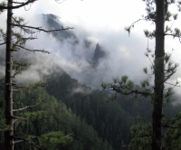 Pinos canarios (Pinus canariensis) entre la niebla
