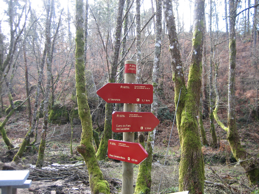 Poste con indicaciones junto al área de descanso de Abelenda