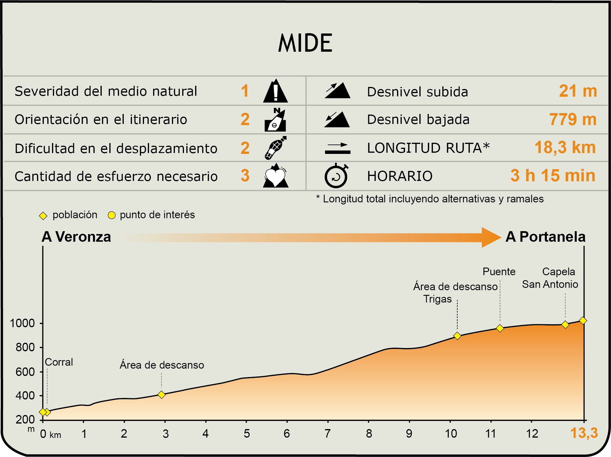 Perfil MIDE de la ruta A Veronza hasta A Portela