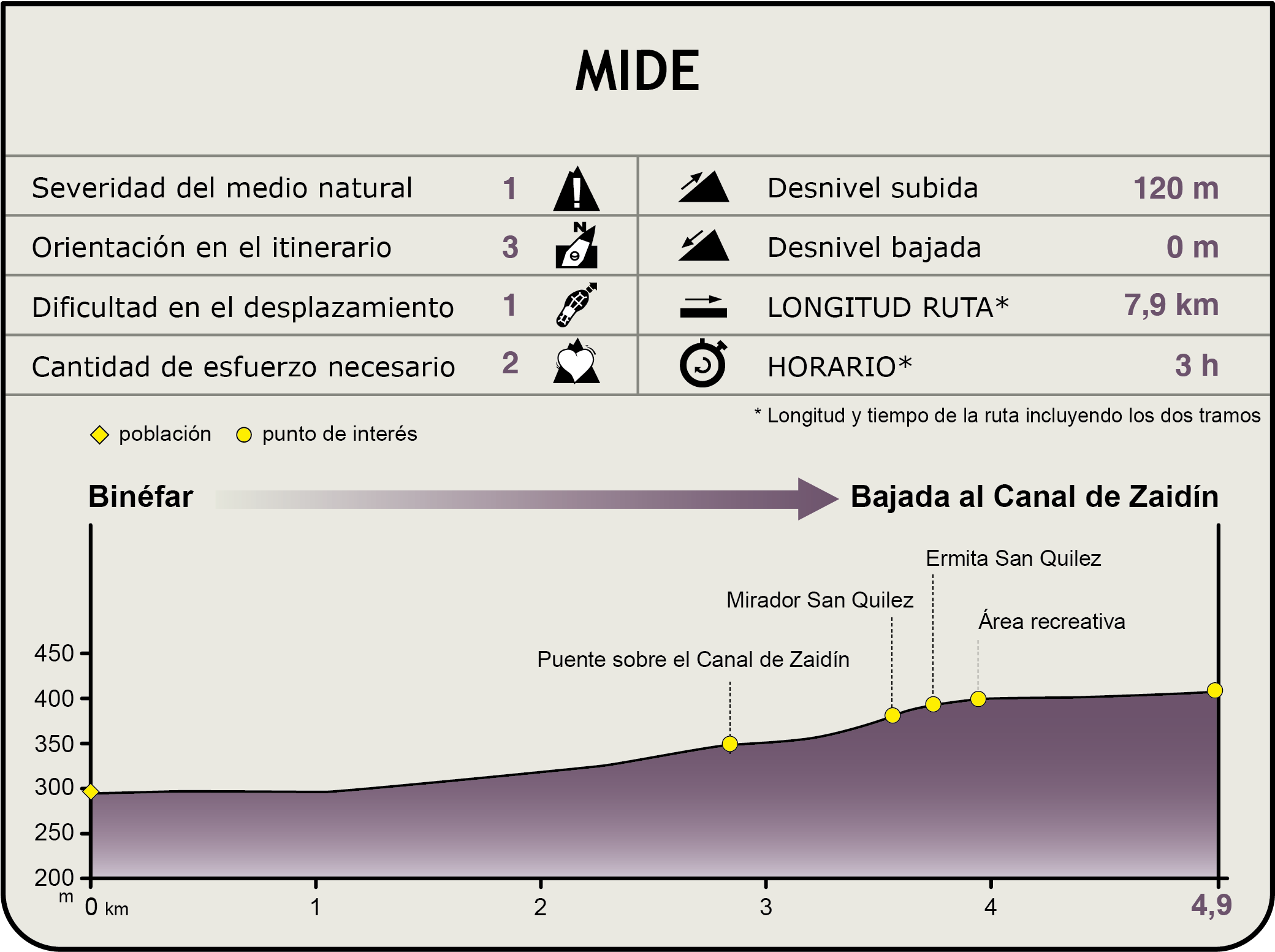 Recorrido del camino paralelo al canal de Zaidín