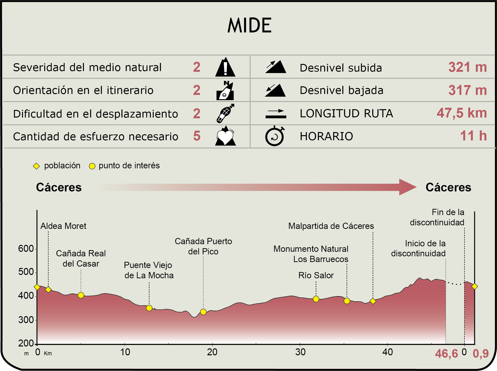 Perfil MIDE del CN del corredor Cáceres-Badajoz (2ª ruta)