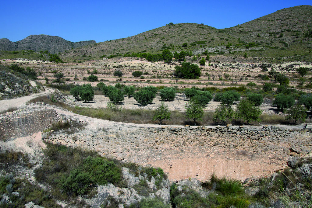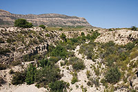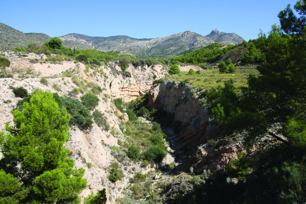 Detalle de la rambla que atraviesa el camino. Al fondo la Sierra del Cid