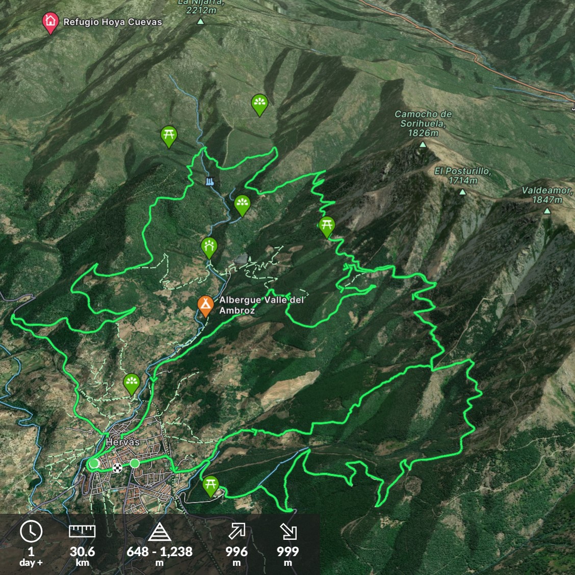 Desnivel de subida: 28 m Desnivel de bajada: 286 m Distancia Horizontal: 4,5 Km Altitud Final: 436 m Altitud Inicial: 694 m Altitud Máxima: 705 m Altitud Mínima: 705 m
