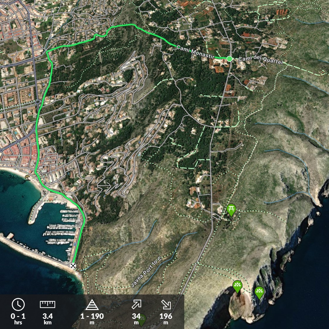 IBP Corriendo: 35 IBP Caminando: 19 IBP Bicicleta: 2 Desnivel de subida: 31 m Desnivel de bajada: 191 m Distancia Horizontal: 1,6 Km Altitud Final: 8 m Altitud Inicial: 168 … PR CV 355 Jávea – Montgó Mas...