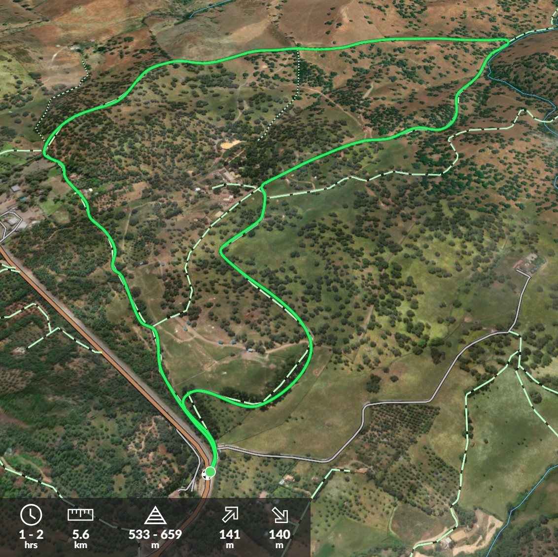 IBP Corriendo: 59 IBP Caminando: 33 IBP Bicicleta: 17 Desnivel de subida: 197 m Desnivel de bajada: 270 m Distancia Horizontal: 5,7 Km Altitud Final: 574 m Altitud Inicial: 647 … PR A 41 Mas...