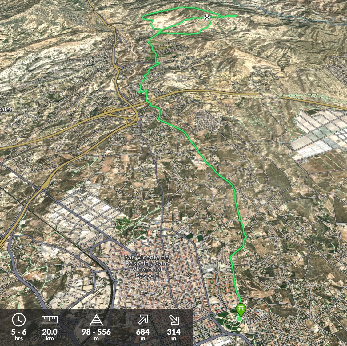 IBP Corriendo: 119 IBP Caminando: 68 IBP Bicicleta: 53 Desnivel de subida: 685 m Desnivel de bajada: 321 m Distancia Horizontal: 9,7 Km Altitud Final: 467 m Altitud Inicial: 97 … PR CV 282 Mas...