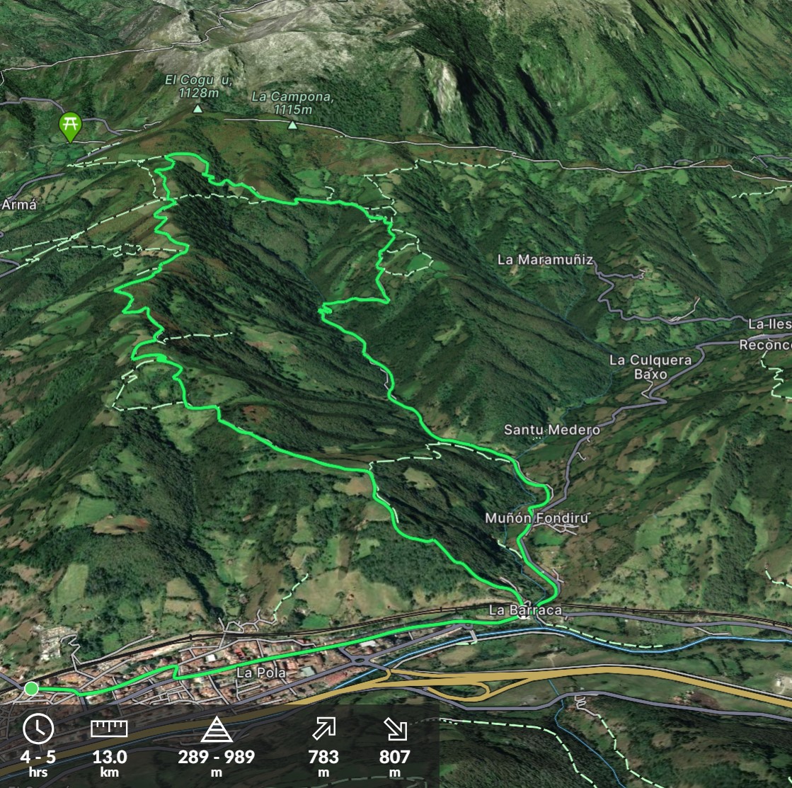 799 mtros. 871 mtros. 17 km. 289 mtros. 899 mtros. Alt.Ini:369 mtros. Alt.Fin:294 mtros. Des.Med:10% Dificultad:Alta Duración:05 horas 16 minutos (Estimado a 3.25 km/h) Acceso:Lena Cartografía:M.T.N. 1:50.000 Hojas 52. 53 … PR AS 80 Vuelta al Valle de Muñón Mas...