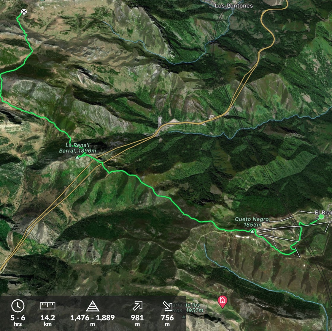 951 mtros. 744 mtros. 14 km. 1487 mtros. 1900 mtros. Alt.Ini:1488 mtros. Alt.Fin:1695 mtros. Des.Med:12% Acceso:Lena Dificultad:Muy Alta Duración:04 horas 49 minutos (Estimado a 2.97 km/h) Cartografía:M.T.N. 1:50.000 Hojas 102 … PR AS 75 Ruta de los Confines de Lena Mas...