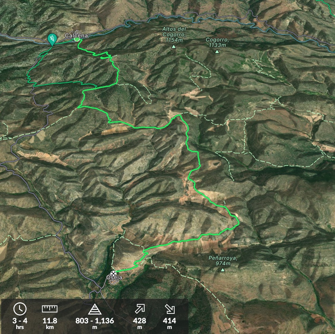 437 mtros. 421 mtros. 12 km. 805 mtros. 1138 mtros. Alt.Ini:806 mtros. Alt.Fin:824 mtros. Des.Med:10% Duración:3h 45′ Dificultad:Fácil Informacion:Calcena – Ermita de San Cristóbal – Oseja Plano/Información Ruta Plano/Información Ruta … PR Z 8 Calcena – Ermita de San Cristóbal Mas...