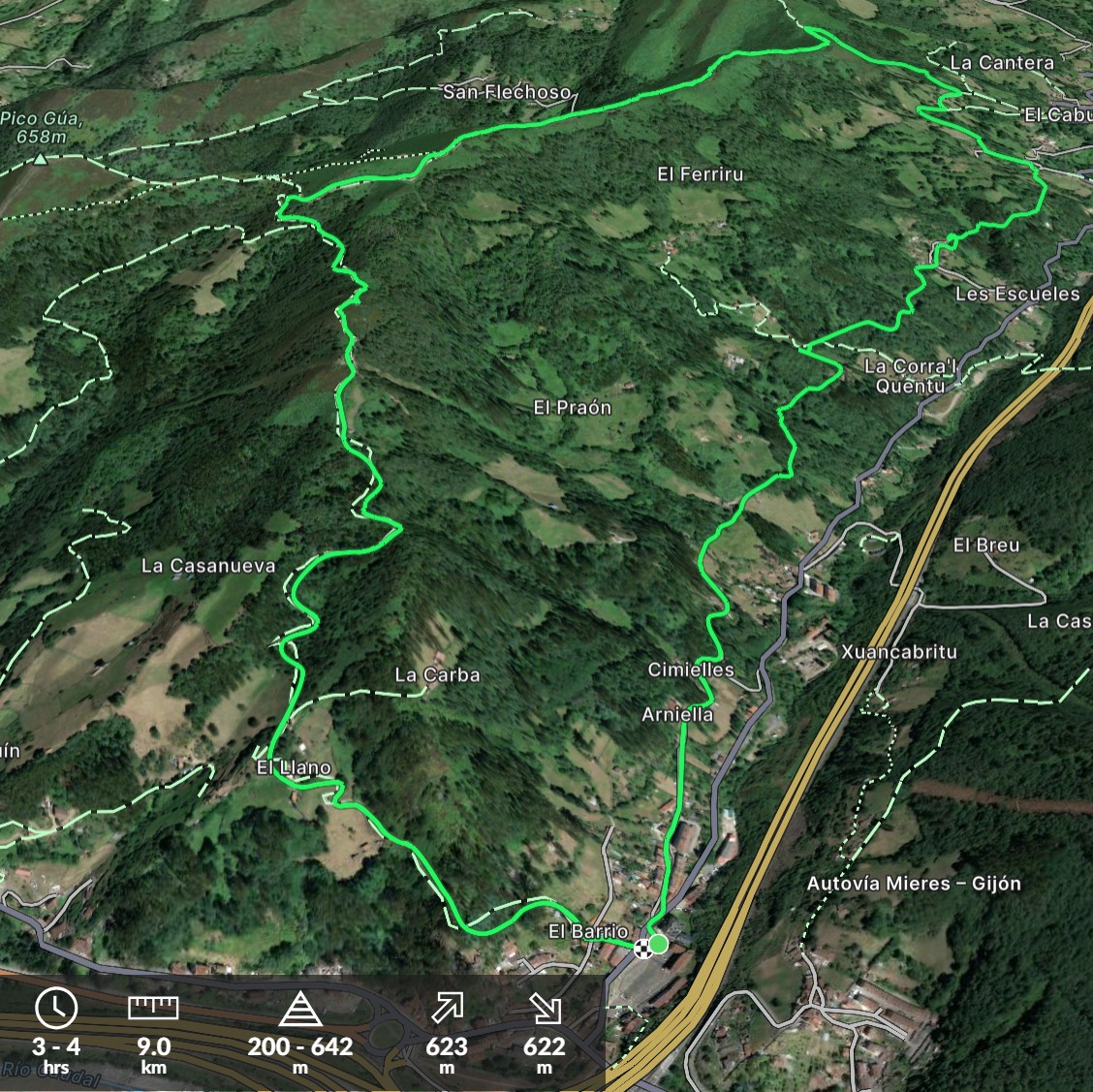 IBP Corriendo: 112 IBP Caminando: 54 IBP Bicicleta: 53 Desnivel de subida: 504 m Desnivel de bajada: 481 m Distancia Horizontal: 0,0 Km Altitud Final: 234 m Altitud Inicial: 211 … PR AS 193 Ruta del valle Miñera Mas...