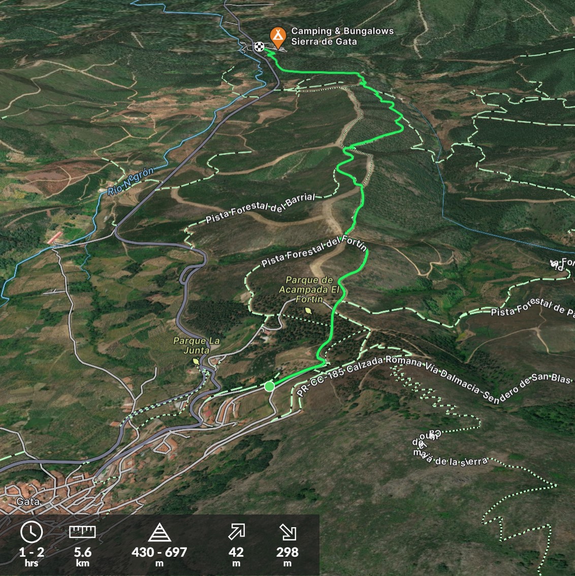 IBP Corriendo: 34 IBP Caminando: 20 IBP Bicicleta: 5 Desnivel de subida: 28 m Desnivel de bajada: 286 m Distancia Horizontal: 4,5 Km Altitud Final: 436 m Altitud Inicial: 694 … SL CC 213 Camino de la Jarda (Gata) Mas...