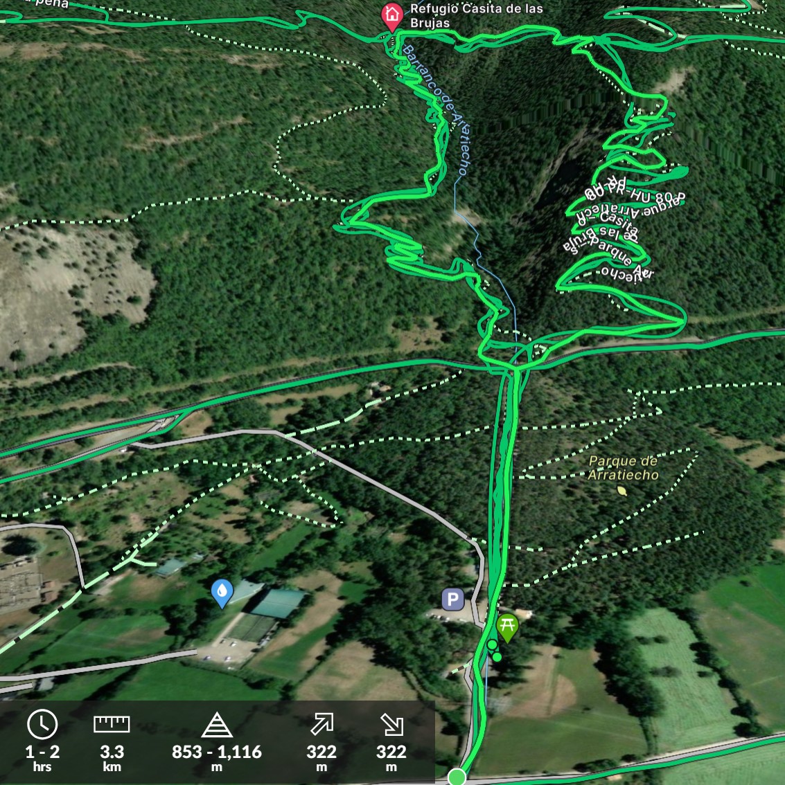 284 mtros. 285 mtros. 3 km. 854 mtros. 1105 mtros. Alt.Ini:855 mtros. Alt.Fin:855 mtros. Des.Med:16% Dificultad:Fácil Duración:1h 25′ Informacion:Parque de Arratiecho (GR 15) – Casita de las Brujas – Parque … PR HU 80 Biescas – Casita de las Brujas – Parque de Arratiecho Mas...