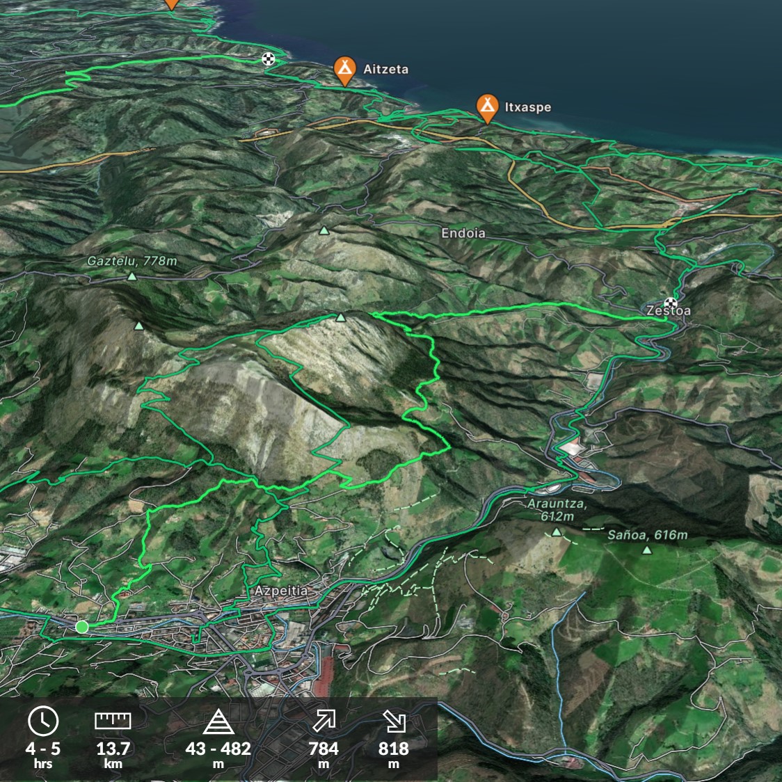 871 mtros. 910 mtros. 14 km. 5 mtros. 477 mtros. Alt.Ini:90 mtros. Alt.Fin:51 mtros. Des.Med:14% Acceso:Azpeitia Nota:Final en Zestoa Dificultad:Alta Documento con más Información Descripción La ruta de senderismo PR-GI-0138 … PR GI 138 Azpeitia-Zestoa Mas...