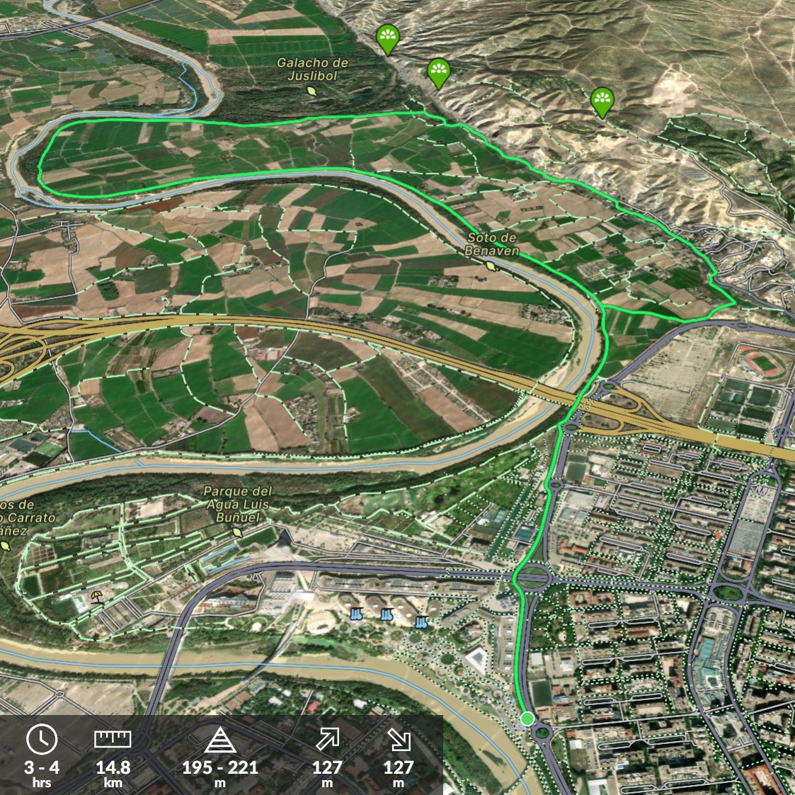 17 mtros. 13 mtros. 15 km. 191 mtros. 210 mtros. Alt.Ini:191 mtros. Alt.Fin:191 mtros. Des.Med:2% Dificultad:Fácil Duración:3h 45′ Informacion:Zaragoza – Juslibol – Galacho de Juslibol – Zaragoza Plano/Información Ruta Plano/Información … PR Z 24 Zaragoza – Fuendetodos Mas...