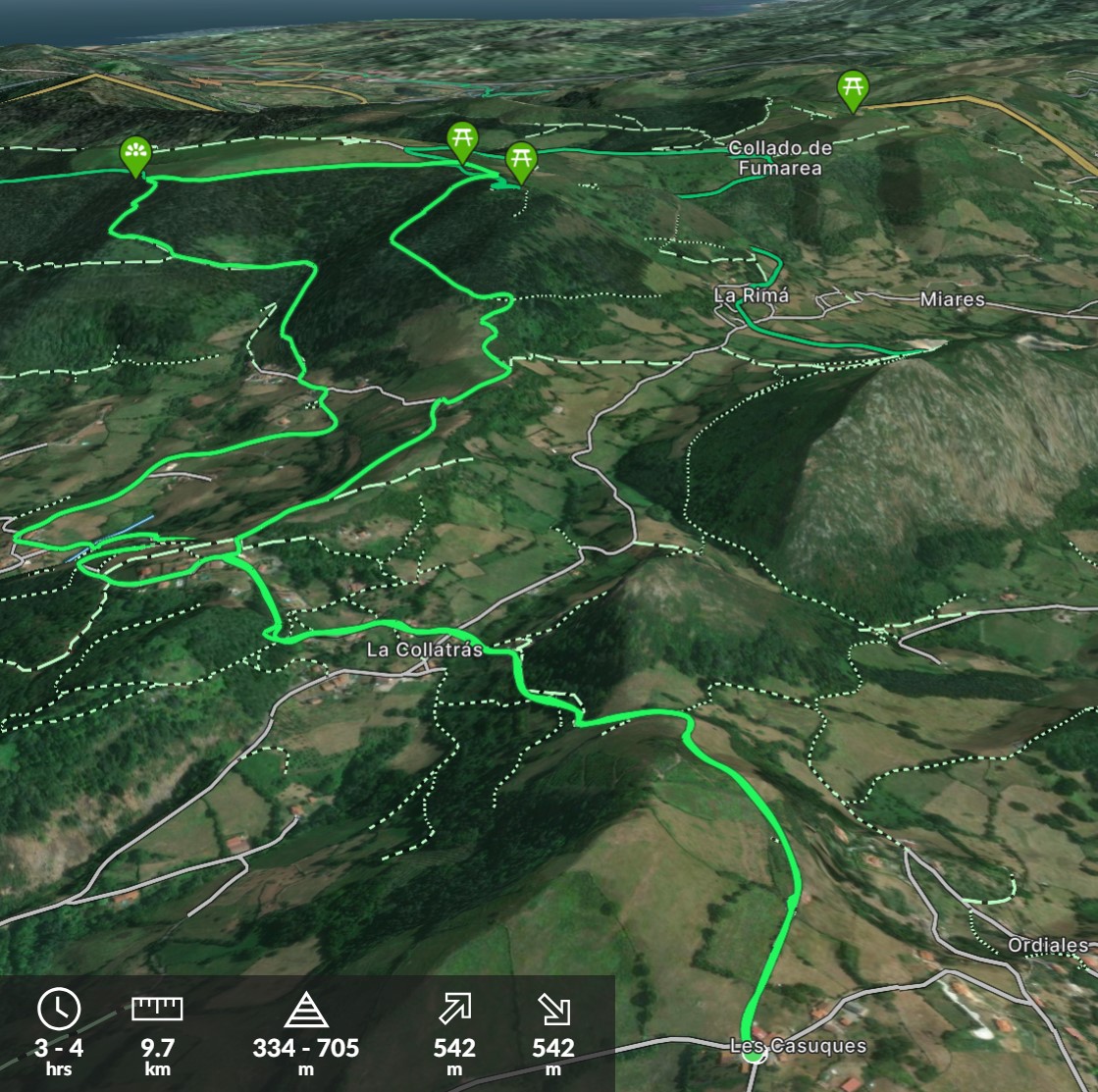 487 mtros. 491 mtros. 10 km. 344 mtros. 696 mtros. Alt.Ini:401 mtros. Alt.Fin:398 mtros. Des.Med:11% Dificultad:Media Duración:02 horas 41 minutos (Estimado a 3.59 km/h) Acceso:Siero Cartografía:M.T.N. 1:50.000 Hoja 29 Informe … PR AS 161 Senda Les CasuquesPicu Fariu Mas...