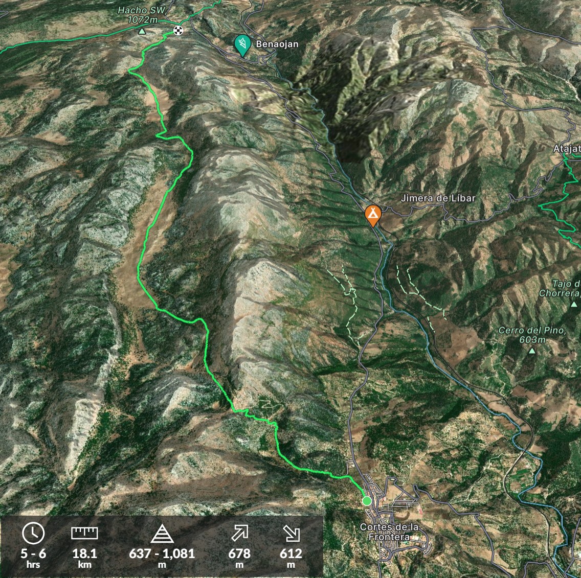 IBP Corriendo: 200 IBP Caminando: 105 IBP Bicicleta: 80 Desnivel de subida: 945 m Desnivel de bajada: 964 m Distancia Horizontal: 16,1 Km Altitud Final: 852 m Altitud Inicial: 873 … GR 7 De Pirineos A Tarifa (Sendero Europeo E4) Mas...