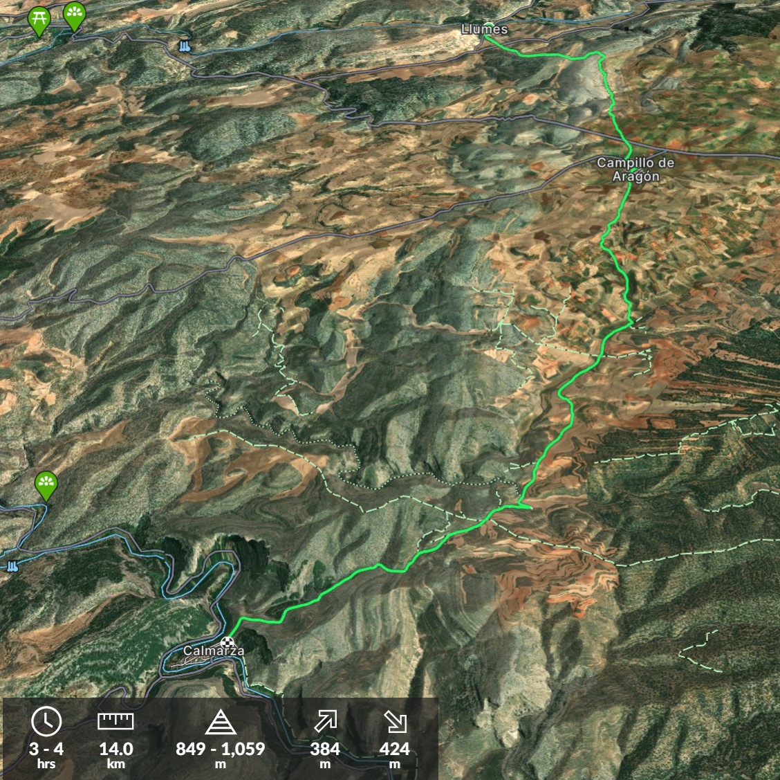 308 mtros. 352 mtros. 14 km. 847 mtros. 1059 mtros. Alt.Ini:894 mtros. Alt.Fin:847 mtros. Des.Med:6% Duración:4h 5′ Dificultad:Fácil Informacion:Llumes – Campillo de Aragón – Calmarza Plano/Información Ruta Plano/Información Ruta Descripción … PR Z 30 Llumes – Calmarza Mas...