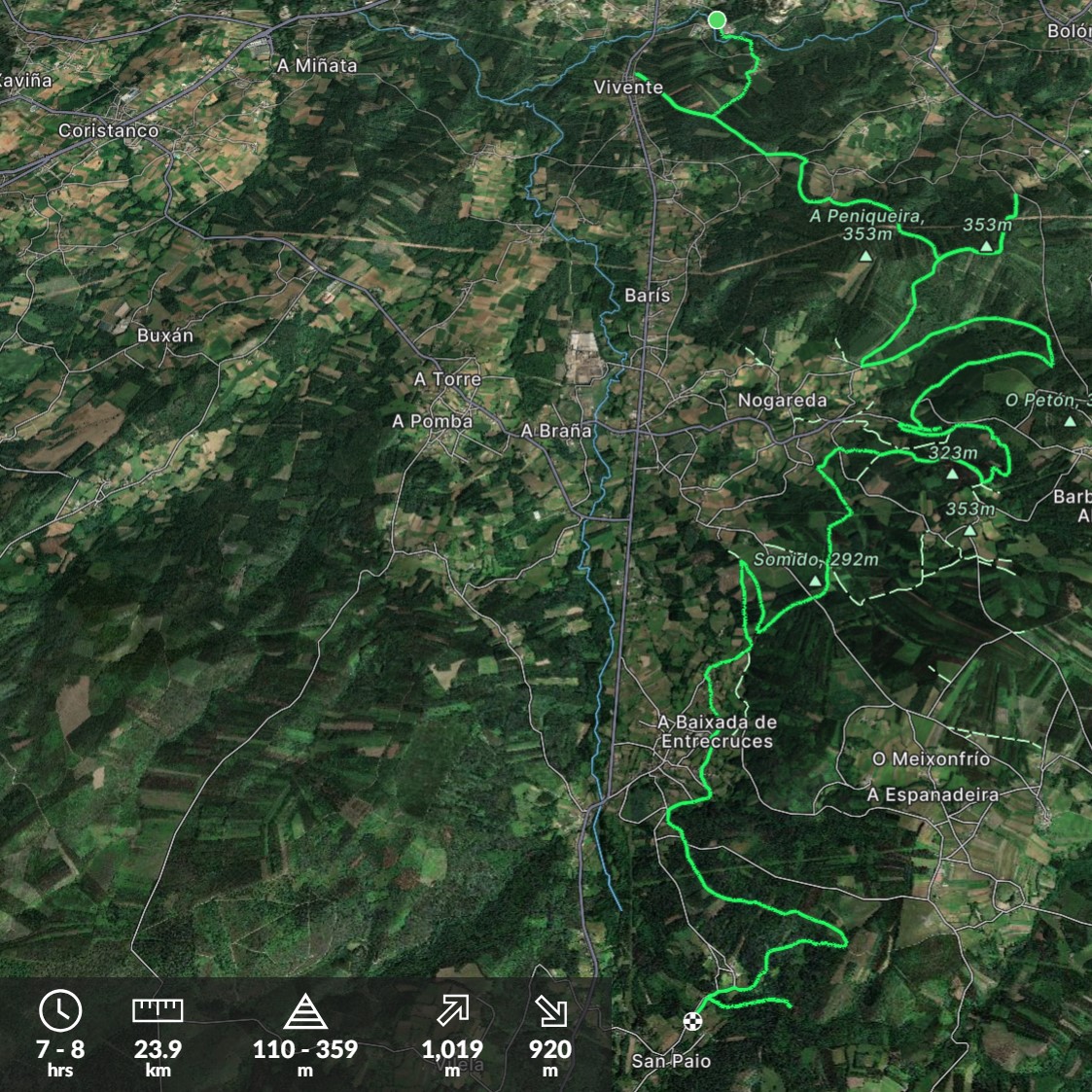 IBP Corriendo: 193 IBP Caminando: 97 IBP Bicicleta: 99 Desnivel de subida: 985 m Desnivel de bajada: 888 m Distancia Horizontal: 8,2 Km Altitud Final: 221 m Altitud Inicial: 123 … PR G 142 Rota das férvedas (Carballo) Mas...