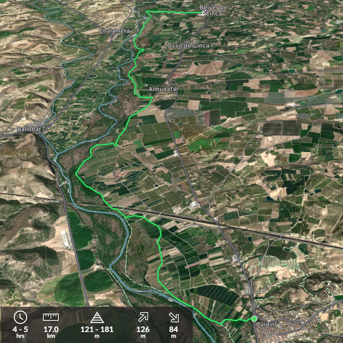 38 mtros. 7 mtros. 17 km. 125 mtros. 181 mtros. Alt.Ini:128 mtros. Alt.Fin:181 mtros. Des.Med:2% Duración:4h 20′ Dificultad:Fácil Informacion:Zaidín – Belver de Cinca Plano/Información Ruta Plano/Información Ruta Descripción La ruta de … PR HU 224 ZAIDÍN – BELVER DE CINCA Mas...