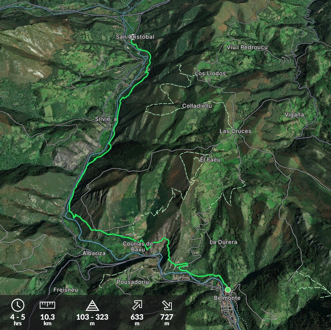 199 mtros. 297 mtros. 10 km. 107 mtros. 302 mtros. Alt.Ini:205 mtros. Alt.Fin:107 mtros. Des.Med:6% Dificultad:Fácil Duración:03 horas 17 minutos (Estimado a 3.07 km/h) Acceso:Belmonte de Miranda Cartografía:M.T.N. 1:50.000 Hojas … PR AS 138 Ruta Salmones arriba Mas...