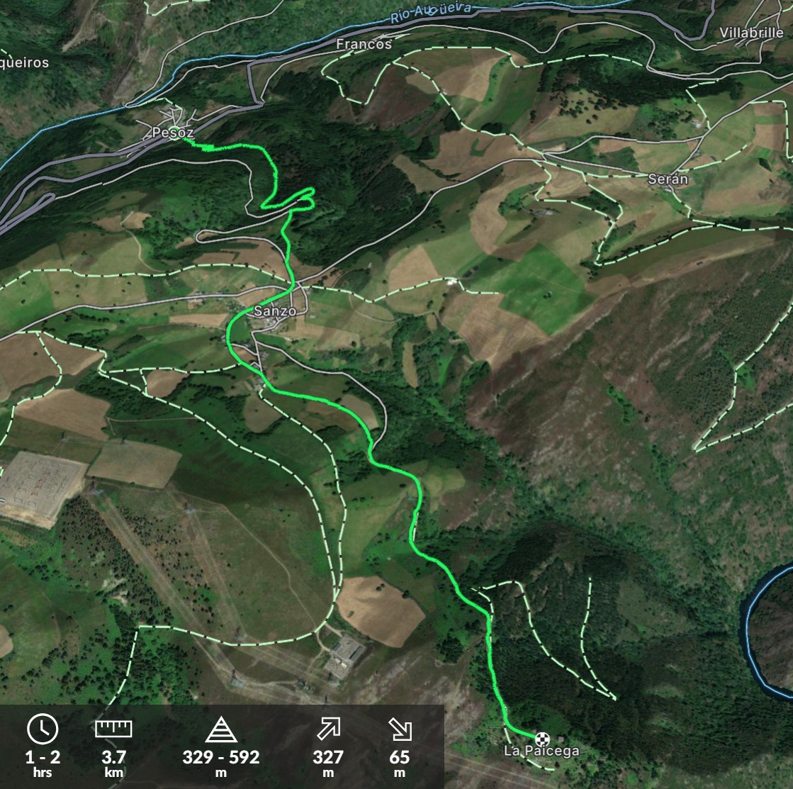 260 mtros. 15 mtros. 4 km. 341 mtros. 586 mtros. Alt.Ini:342 mtros. Alt.Fin:586 mtros. Des.Med:11% Acceso:Pesoz Dificultad:Fácil Duración:01 horas 10 minutos (Estimado a 3.09 km/h) Cartografía:M.T.N. 1:50.000 Hojas 49 y … PR AS 169 Ruta de la Paicega Mas...