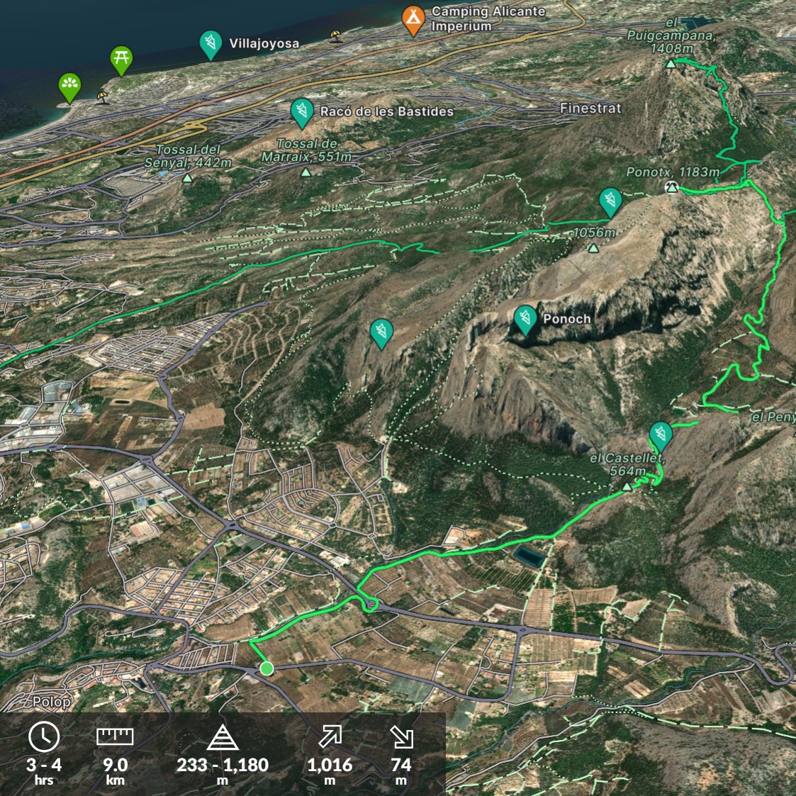 IBP Corriendo: 117 IBP Caminando: 63 IBP Bicicleta: 99 Desnivel de subida: 968 m Desnivel de bajada: 22 m Distancia Horizontal: 3,7 Km Altitud Final: 1187 m Altitud Inicial: 241 … PR CV 16 Polop – El Ponotx Mas...