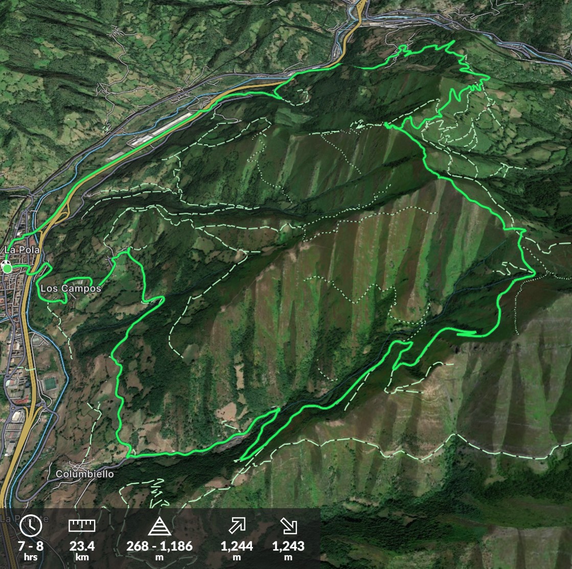 1084 mtros. 1094 mtros. 23 km. 264 mtros. 1183 mtros. Alt.Ini:299 mtros. Alt.Fin:294 mtros. Des.Med:10% Dificultad:Muy Alta Duración:07 horas 12 minutos (Estimado a 3.23 km/h) Acceso:Lena Cartografía:M.T.N. 1:50.000 Hojas 53 … PR AS 76 Vuelta al Pico Ranero Mas...