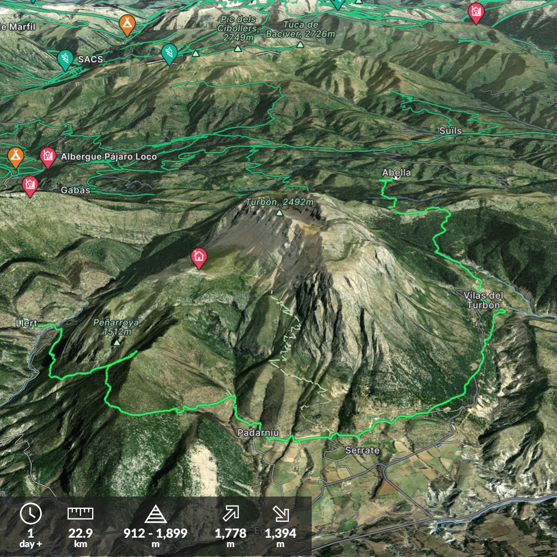 1543 mtros. 1142 mtros. 23 km. 926 mtros. 1898 mtros. Alt.Ini:982 mtros. Alt.Fin:1383 mtros. Des.Med:13% Duración:8h 45′ Dificultad:Muy Alta Informacion:Llert – Padarniu – Serrate – Pueyo – Vilas del Turbón … PR HU 133 Ller – Padarniu – Vilas del Turbón – Abella Mas...