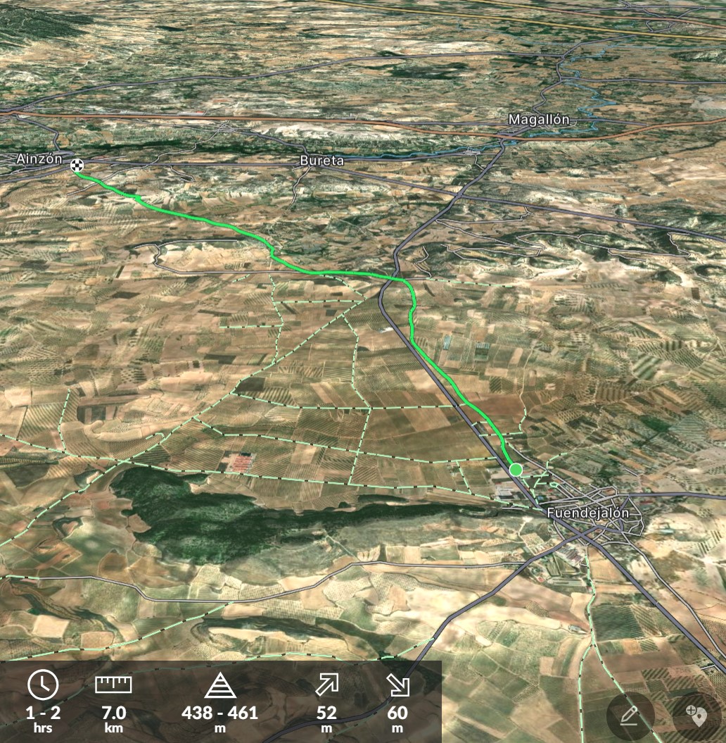 22 mtros. 28 mtros. 7 km. 440 mtros. 461 mtros. Alt.Ini:455 mtros. Alt.Fin:444 mtros. Des.Med:2% Duración:1h 45′ Dificultad:Muy Fácil Informacion:Fuendejalón – Ainzón Plano/Información Ruta Plano/Información Ruta Descripción La ruta de … PR Z 167 FUENDEJALÓN – AINZÓN Mas...